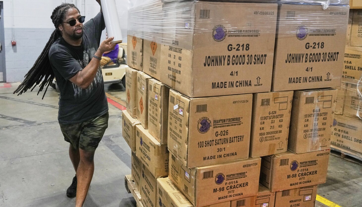 Wszystkie fajerwerki sprzedawane w sklepie Uncle Sam’s Fireworks Store w Hammond w Indianie pochodzą z Chin, powiedział współwłaściciel Dan „Dynamite” Mota.